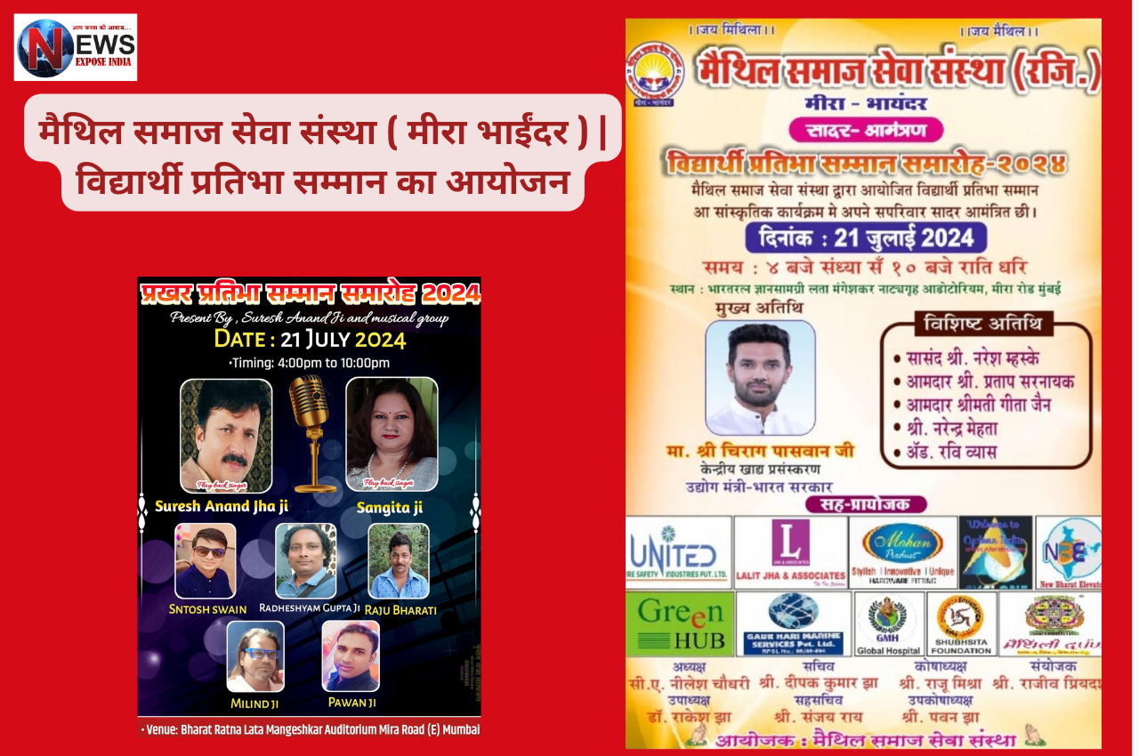 २१ जुलाई २०२४ को मीरा रोड के ’भारत रत्न लता मंगेशकर नाट्यगृह’ में विद्यार्थी प्रतिभा सम्मान का आयोजन किया जा रहा है। संस्था के पूर्व अध्यक्ष अरुण चौधरी ने बताया कि कार्यक्रम में IAS, IPS, MBBS, CA व अन्य प्रोफेशनल के साथ ही कला व व्यापार के क्षेत्र में सफल व सम्मानित वक्ताओं को आमंत्रित किया गया है। ये सभी वक्ता विद्यार्थियों को अपनी अपनी विषय पर मार्गदर्शन देंगे।