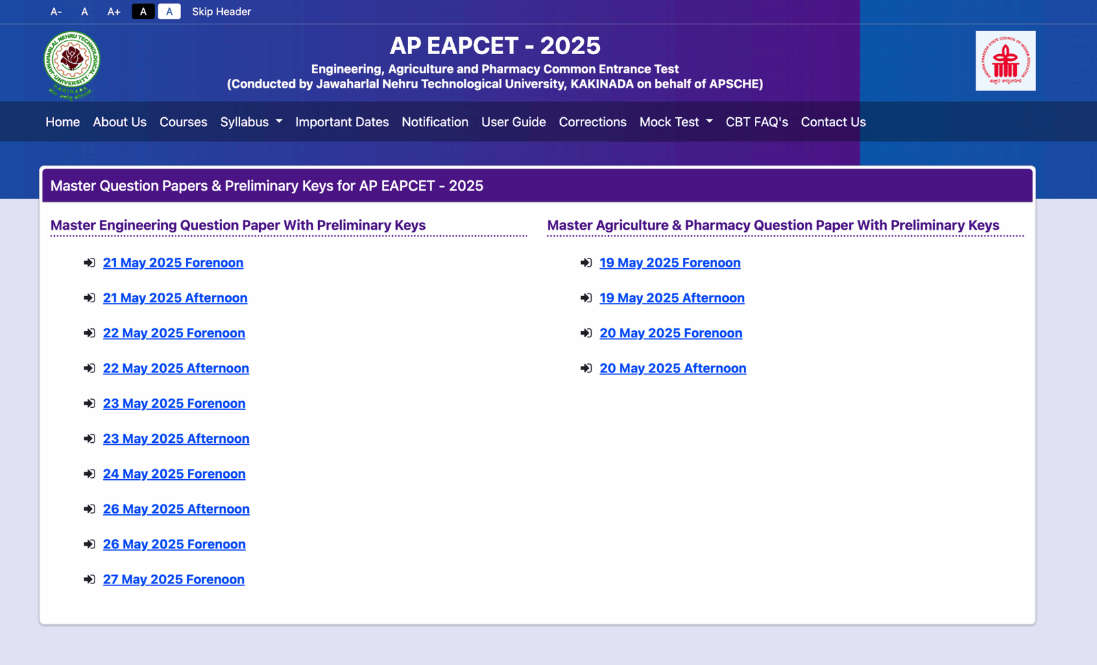 Master Question Papers & Preliminary Keys for AP EAPCET – 2025