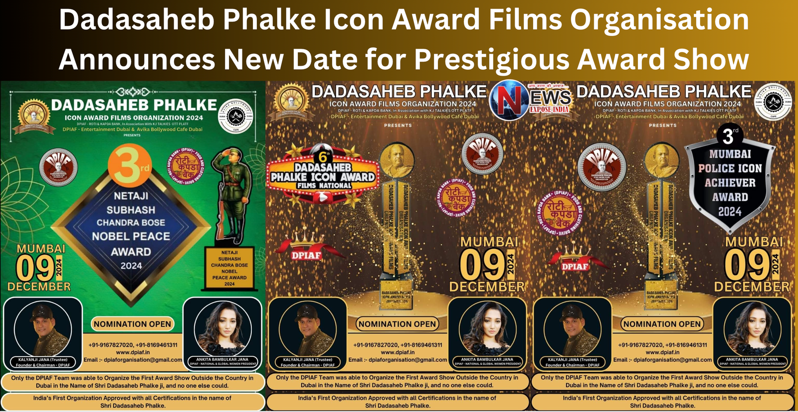 Mumbai, November 2024 – The much-awaited 6th Dadasaheb Phalke Icon Award Films 2024 and 3rd Mumbai Police Icon Achiever Award 2024, organized by the Dadasaheb Phalke Icon Award Films Organisation (DPIAF) and its visionary Founder & Chairman Kalyanji Jana, is set to be the grandest celebration of excellence in the Indian film industry, law enforcement, and global peace. Following a highly successful international edition in Dubai, this iconic event will take place on 9th December 2024 in Malad West, Mumbai, bringing together luminaries from the world of cinema, business, law enforcement, and social work.
