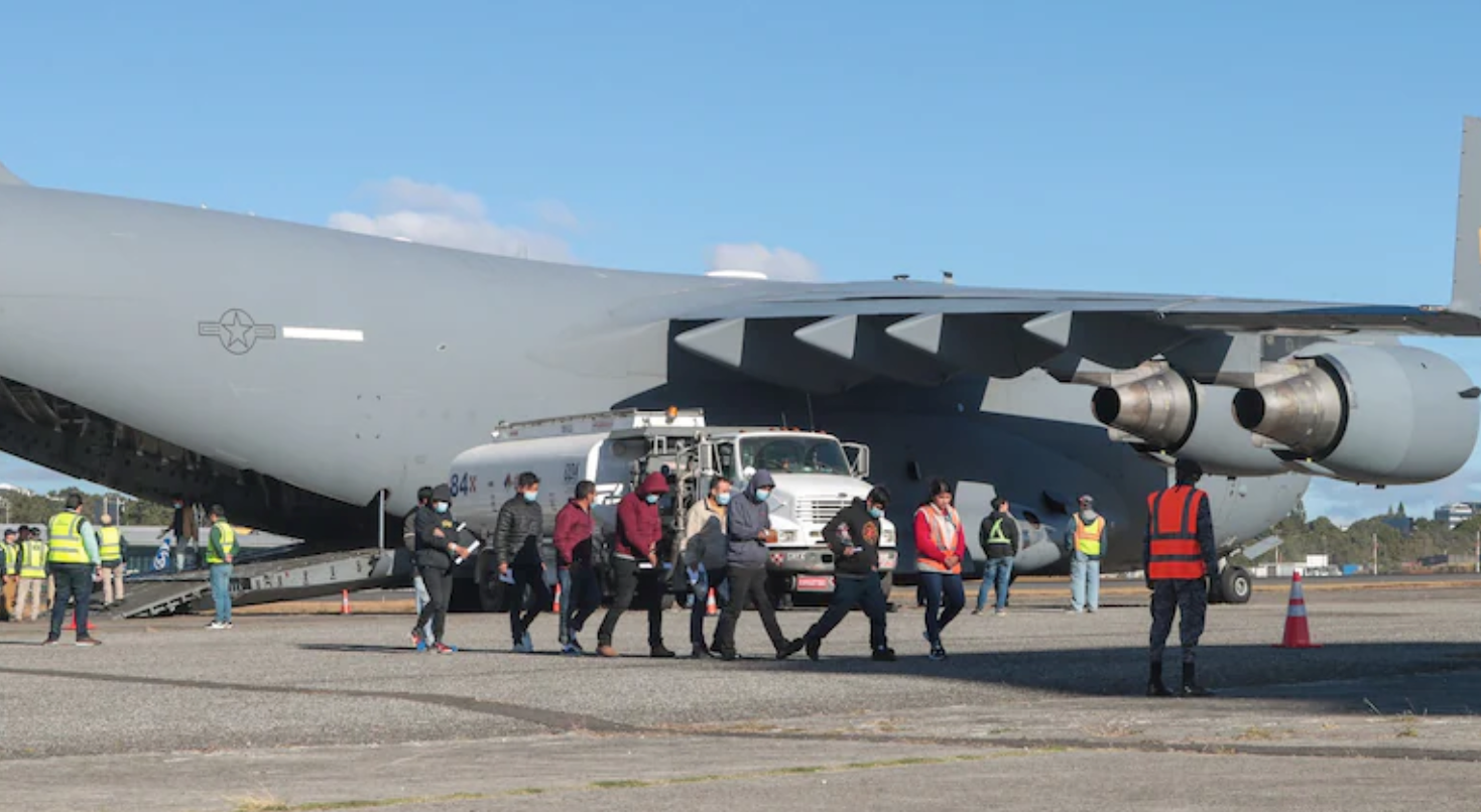 पहला अमेरिकी सैन्य विमान 5 फरवरी को 104 निष्कासित भारतीयों को लेकर भारत आया था। इनमें से 33 हरियाणा और गुजरात से, 30 पंजाब से, 3-3 महाराष्ट्र और उत्तर प्रदेश से और 2 चंडीगढ़ से थे। इनमें से कई प्रवासियों ने अमेरिकी प्रवेश के वैध वादों पर भारी पैसे खर्च किए थे, लेकिन इसके बजाय उन्हें मानव तस्करों द्वारा कई देशों के कठिन मार्गों से गुजरने के लिए मजबूर किया गया था।