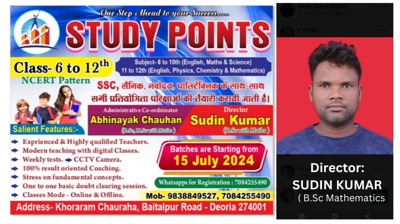 July 26, 2024 Khoraram Chauraha, Deoria — Study Points Tutorial, a prominent name in educational excellence, has announced the launch of its new digital learning solutions and exam preparation programs for students in grades 6 through 12. These innovative offerings include core subject tutorials and specialized coaching for competitive exams, all enhanced by state-of-the-art digital board technology.